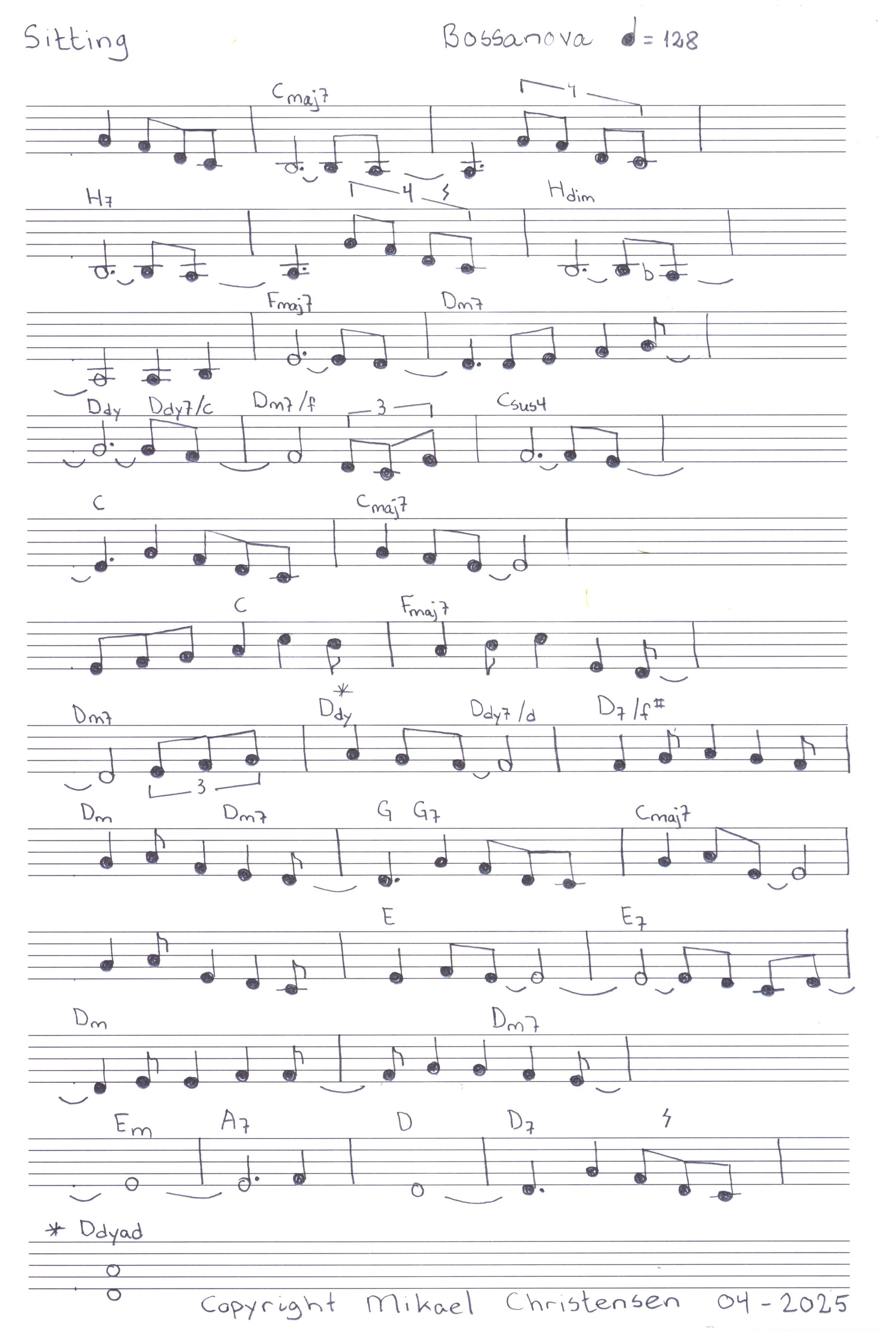 Sitting at a coffeebar. People are passing me watching their telephone. Drinking an Alúa while the clouds slowly pass me up above. Sitting at a coffeebar. Feeling the ambience by candlelight. Quietly a bossanova's raising in the air.
